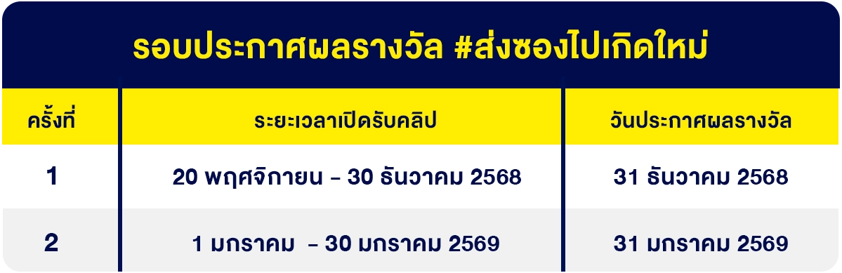 ถ่ายคลิปลุ้นรางวัลเสร็จแล้ว ไปรอลุ้นโชคเด้งที่ 2 ด้วยกัน “ส่งปุ๊บ ลุ้นปั๊บ เด้งทุกเดือน” คลิกเลย